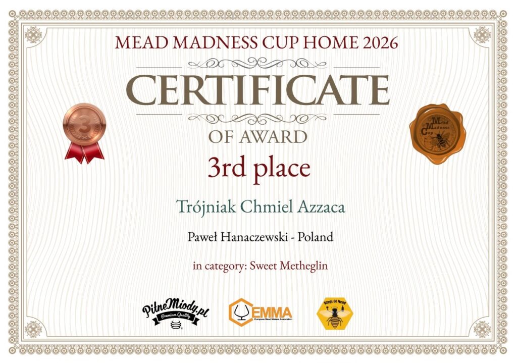 Z prawdziwą radością pragniemy ogłosić,  że Nasz Kolega, Paweł Hanaczewski, osiągnął znaczący sukces na arenie międzynarodowej, zdobywając uznanie w prestiżowym konkursie Mead Madness Cup 2026.